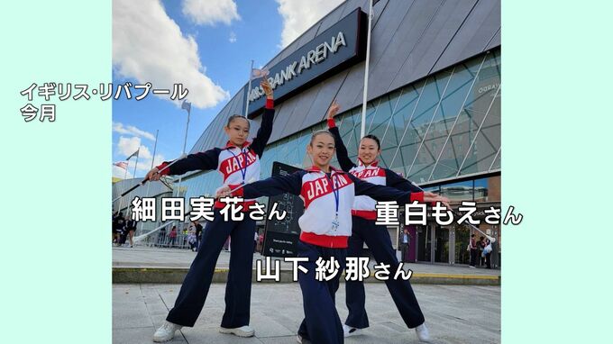 3人は今月(8月)イギリスで行われた「IBTF世界バトントワーリング選手権」に出場し、ジュニア・アーティスティックペアで優勝するなど高い成績を収めました。