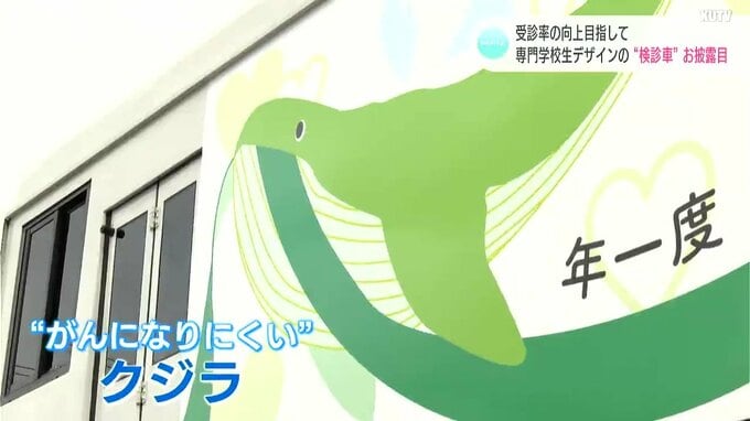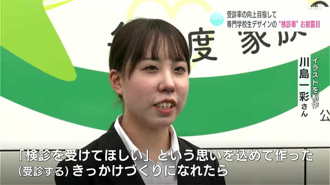 がん検診の普及に向け専門学校生のイラストがデザインされた検診車が登場しました。