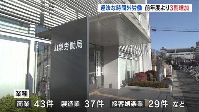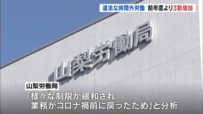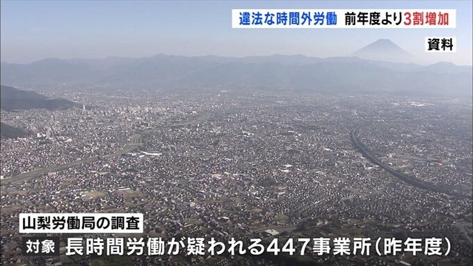 2022年度県内で違法な時間外労働が確認された事業所は206あり、前の年度より3割増えたことが山梨労働局の調査で分かりました。