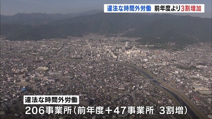 その結果、半数近くにあたる206の事業所で違法な時間外労働が確認されました。前の年度より3割47事業所増えました。
