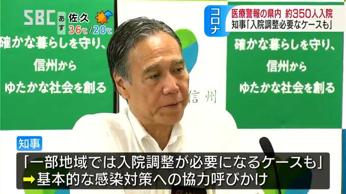 新型コロナの医療警報が出されている長野県内では29日時点の入院患者が350人近くに上っていて、阿部知事は「地域によっては入院調整が必要になることもありうる」として感染予防への協力を呼びかけました。