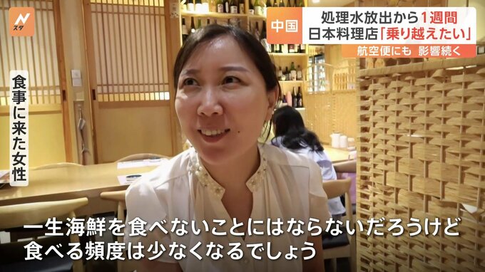 東京電力福島第一原発の処理水放出開始から1週間。中国での日本料理店では、ここ数日で急に客足が遠のくなど影響が広がっています。記者「北京の日本料理店です。お昼の時間は、普段は満席になるそうですが、空席…
