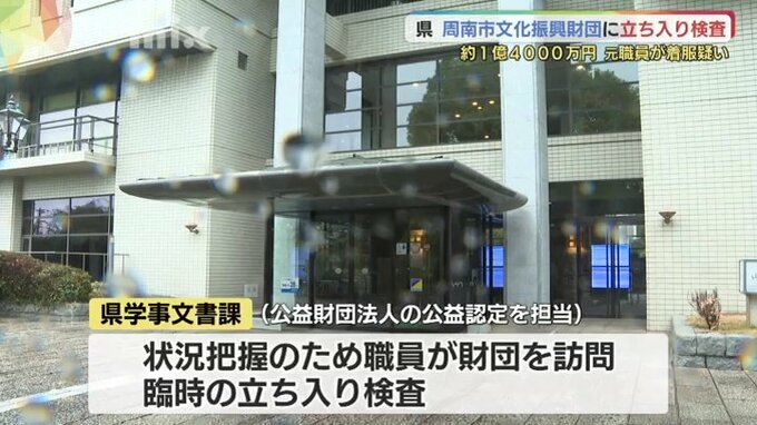周南市文化振興財団でコンサートの売上金など1億4000万円あまりが元職員に着服されたとされる問題で、山口県は、財団に対して臨時の立入検査を行いました。
