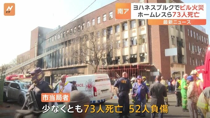 南アフリカの最大都市ヨハネスブルクの商業地区にある5階建てのビルで31日未明、火災が発生しました。市当局者によりますと、この火災で少なくとも子ども7人を含む73人が死亡、52人が負傷したということです。この…