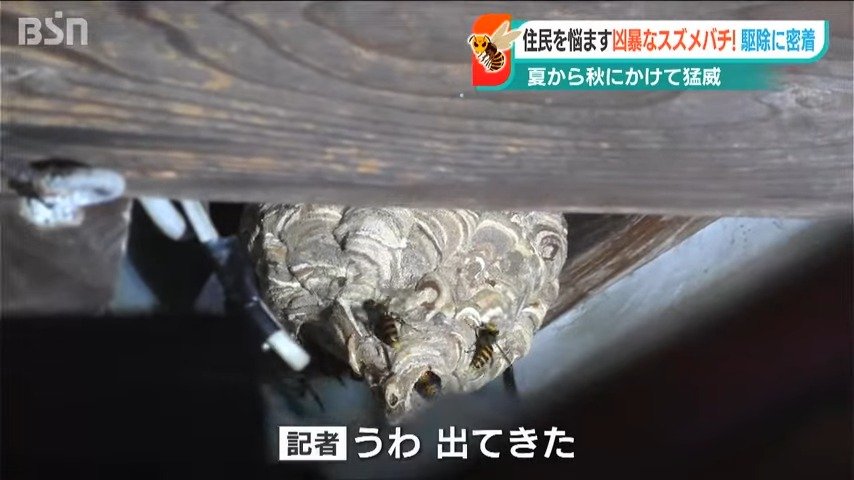 ダスキンターミニックスの川瀬敏裕さんの話では、動くものなどに反応するハチは巣が完成すると、より過敏に、より攻撃力を増す印象です。