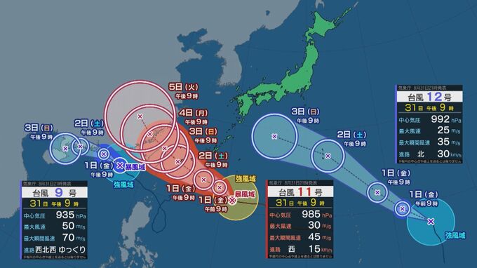台風11号の影響で、沖縄県・北大東島は朝から波が高くなっていました。現在、日本の南海上には「トリプル台風」が発生中。台風11号は週末にかけて沖縄に接近しています。