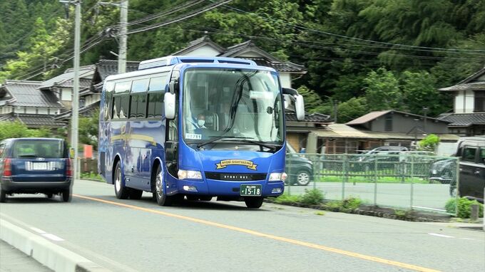 参加者を乗せたバスが岡山県北部の西粟倉村に到着しました。