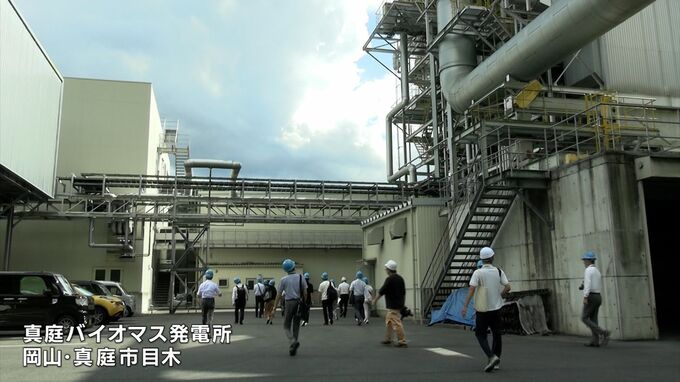 続いて訪れた真庭市では木くずや樹皮など、これまで利用価値のなかった木材から電気をつくりだすバイオマス発電所を見学しました。