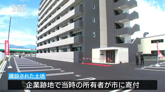 塩尻市が寄付を受けた土地に民間の賃貸マンションが完成しました。