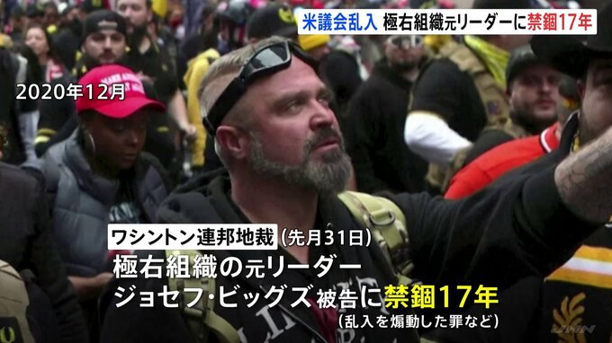 2021年に起きたアメリカ連邦議会乱入事件で、議会への乱入を扇動した罪などに問われた極右組織の元リーダーに禁錮17年の刑が言い渡されました。ワシントンの連邦地裁は31日、アメリカ連邦議会乱入事件で、議会への…