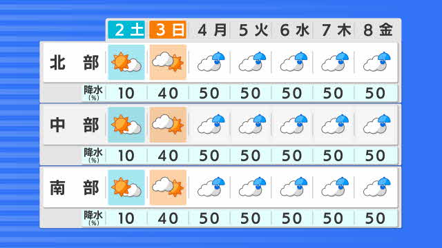 気象庁は、沖縄地方では2日から3日にかけて暴風に警戒するよう呼びかけています。