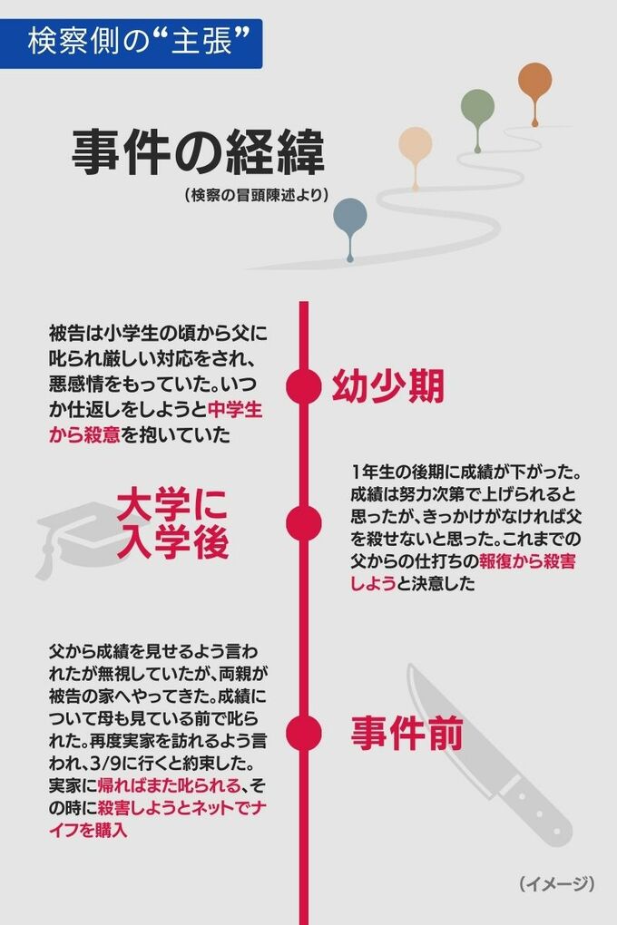 検察側の冒頭陳述によると、長男が事件にいたったのは次のようないきさつだったという。