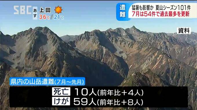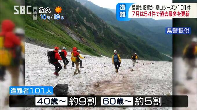 長野県内では今年の夏山シーズンに101件の山岳遭難が発生し、この内7月は54件と過去最も多くなりました。