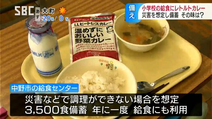 中野市では来週までに11の小中学校全てで非常食のカレーを給食で提供します。