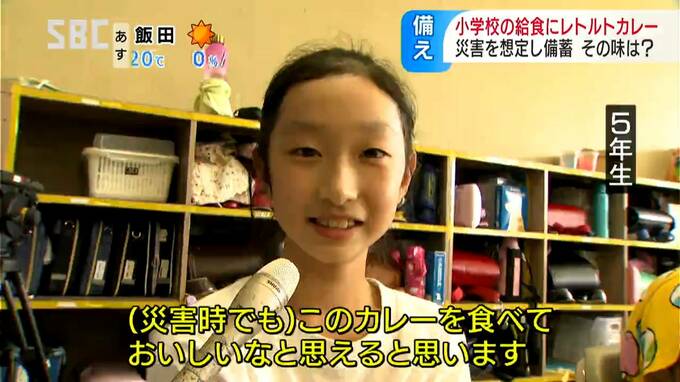 「防災の日」にあわせ、子どもたちにも意識を高めてもらおうと、中野市の小学校では給食に非常食のカレーが出されました。