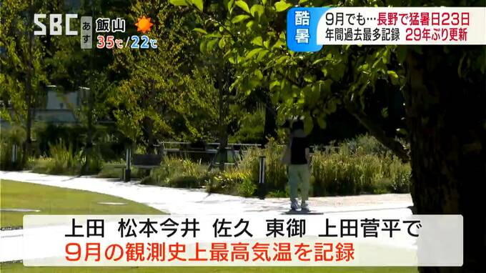 また、上田や佐久など5地点で9月の観測史上最高気温を塗り替えました。
