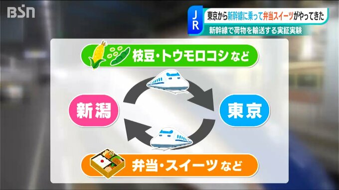 往復の新幹線で“荷物だけ”を輸送する『実証実験』の一環として、東京から“出来立て”で運ばれてきた来た人気店の「弁当」や「スイーツ」などの商品を販売するイベント『東京のものマルシェ』が、JR新潟駅で開かれています。
