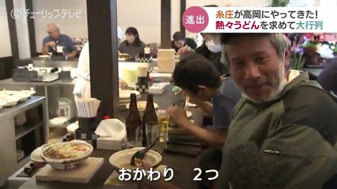 記者:「糸庄が高岡にやってきたということで、開店前から長い行列ができています」