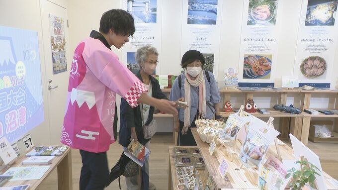 第1弾としてブースが設置されたのは、ことし市政100周年を迎えた静岡県の沼津市(~7日)。モニターやパネルを使って市内の美しい景色や観光施設などをPRする他、3日までは、干物やスイーツなどの地元の特産品も販売されています。