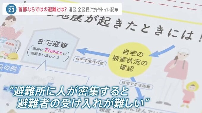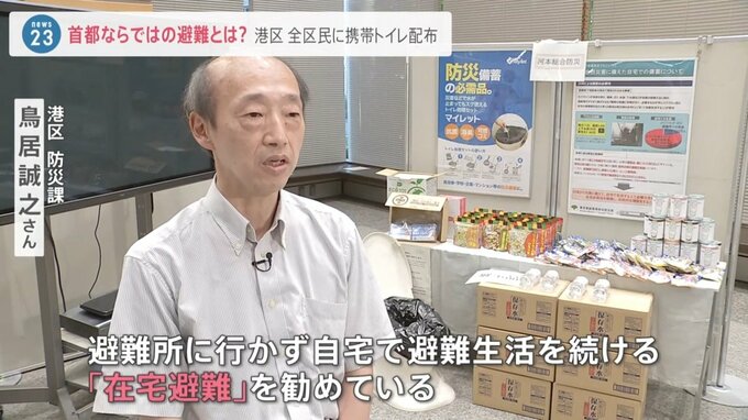 「港区では自宅に大きな被害がない場合は、避難所に行かず自宅で避難生活を続ける『在宅避難』といったものを勧めている」