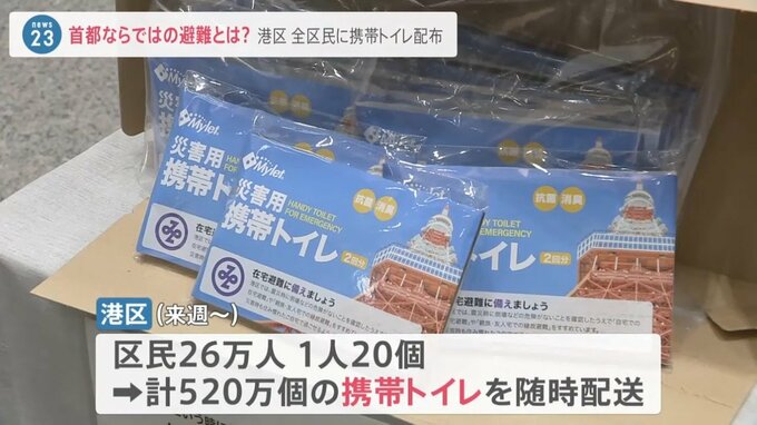 区民26万人に1人20個ずつ、合計520万個の携帯トイレを随時配送すると言います。