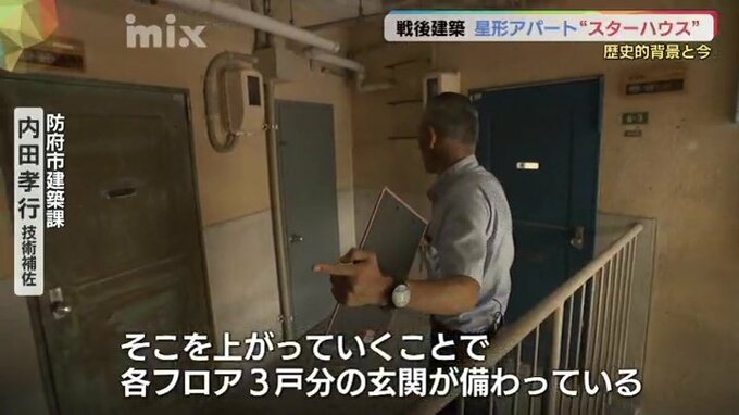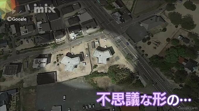山口県防府市を上空から見た衛星写真です。ある場所を拡大してみると、なにやら不思議な形のものが見て取れます。探してみると、市内3か所で確認できました。現場に行ってみると…鞠生町にある市営住宅の建物でした。その形からスターハウスと呼ばれています。