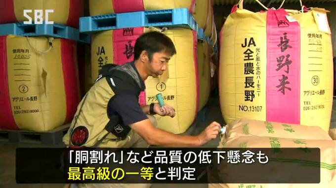 この夏の猛暑の影響が心配される中、松本市で今年収穫された新米の初検査が行われました。