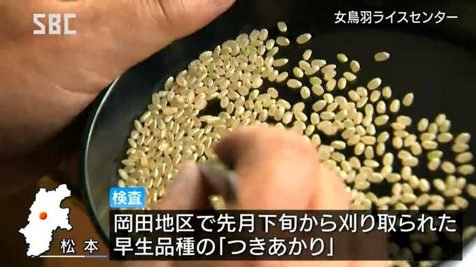 検査が行われたのは、松本市岡田地区で8月下旬から刈り取られた早生種の「つきあかり」です。
