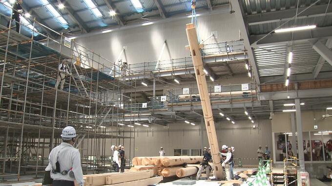 正殿工事で初めて設置された柱は長さおよそ7.2メートル直径およそ40センチの奈良県産ヒノキです。