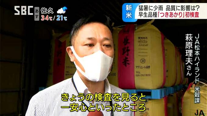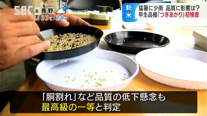 猛暑の影響が心配される中、松本市で新米の初検査が行われました。