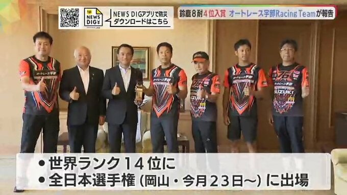 オートバイレース、「鈴鹿8耐」で初出場・4位入賞を果たした山口県宇部市のチームが、村岡嗣政 山口県知事に結果を報告しました。