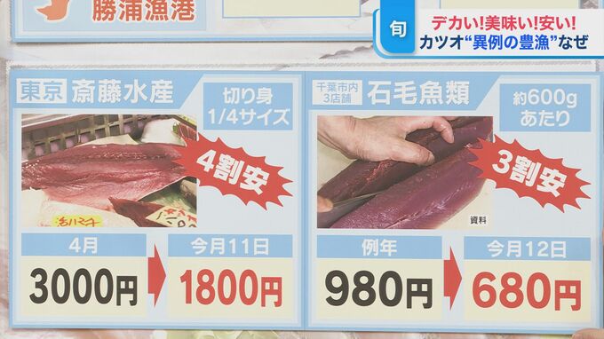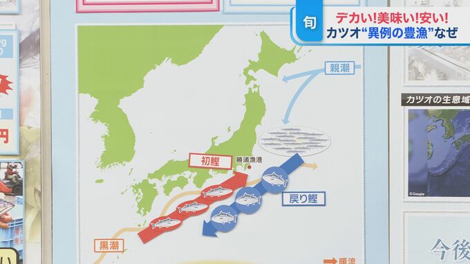 今が旬のカツオ。そのカツオが、千葉の勝浦港などで“異例の豊漁”となっています。味も良くて大きくて値段が安い!?旬のカツオの味わい方を人気食堂がご紹介。原因はカツオの生息域変化・・・?豊漁のワケに迫ります。