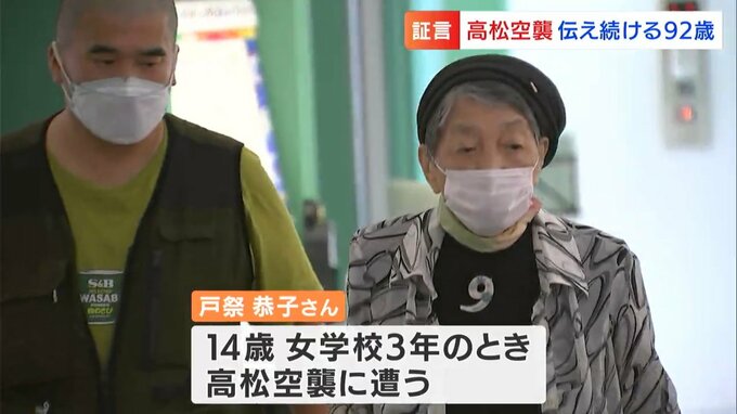 イブニングニュースでは、戦後78年が経ち、語れる人が少なくなってきている戦争証言をお伝えしています。今回は、1945年7月4日、14歳の時に高松空襲に遭い、焼夷弾が降る中を逃げた92歳の女性の証言です。