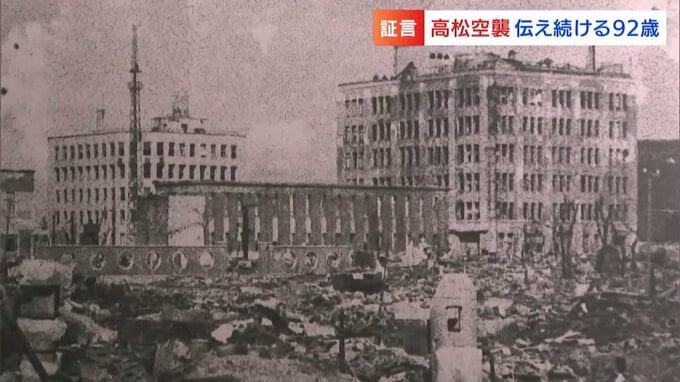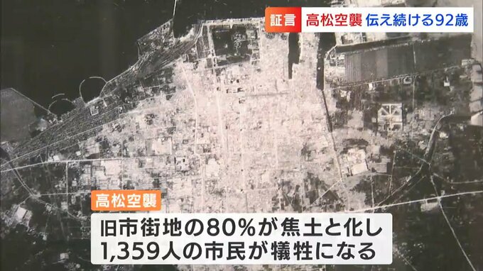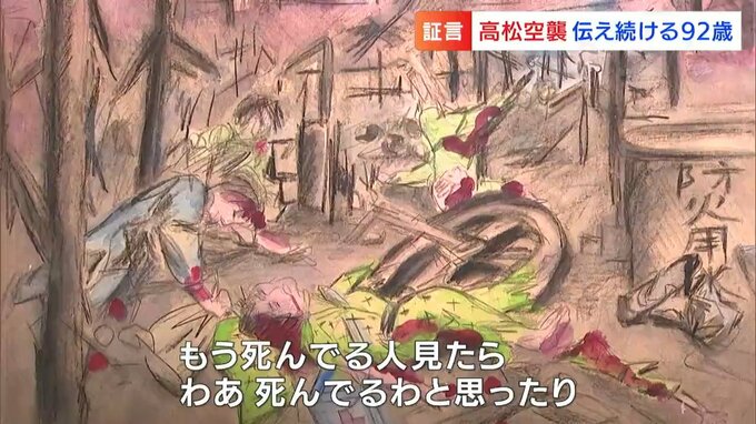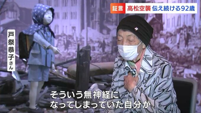 戸祭さんが母親や姉たちと水にぬらした布団をかぶって逃げ、九死に一生を得た高松空襲。