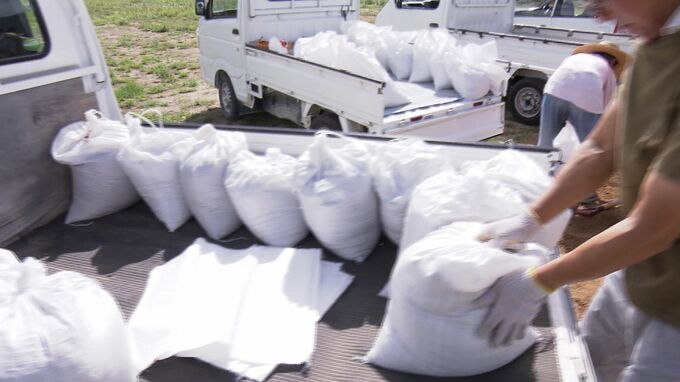 台風シーズン中の大雨による浸水被害に備えてもらおうと、岡山市で土のうの無料配布が行われました。土のうの無料配布は、岡山市内4か所で行われました。このうち北区玉柏では、4000枚の土のう袋と約50トンの真砂…