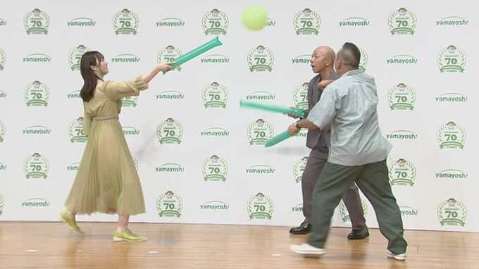 「わさビーフ」などで知られる山芳製菓株式会社が、今年創立70周年を迎えるにあたり、「山芳製菓 70周年記念発表会」を開催。ゲストに女優の本田望結さん、お笑いコンビ「バイきんぐ」の小峠英二さん、西村瑞樹さんが登壇しました。