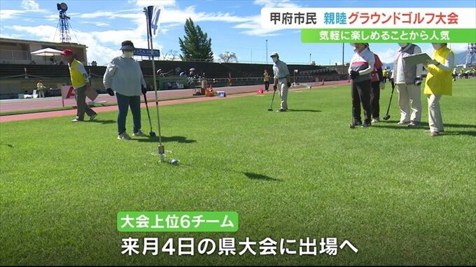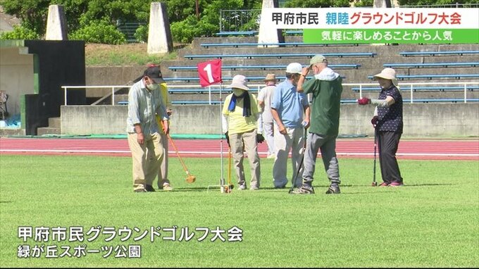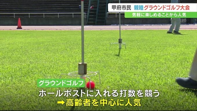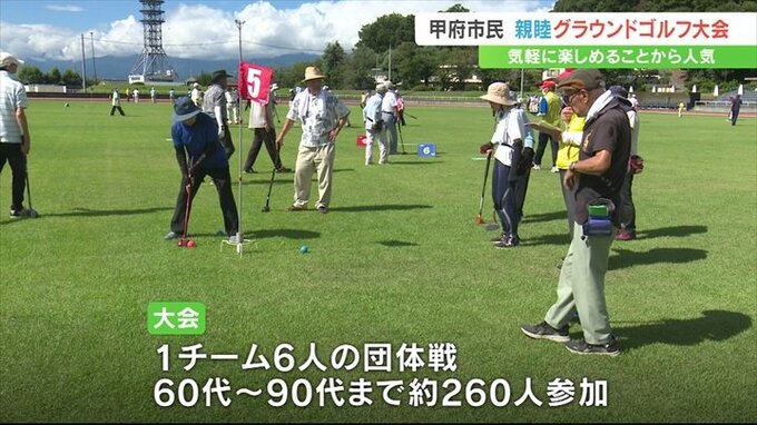 60歳以上の甲府市民、約260人が参加したグラウンドゴルフの大会が甲府市で開かれました。