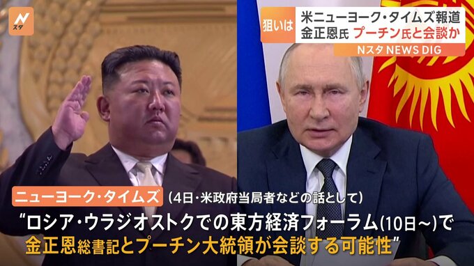北朝鮮の金正恩総書記が今月、ロシアを訪問しプーチン大統領との会談を計画しているとアメリカメディアが報じました。ニューヨーク・タイムズが4日、アメリカ政府当局者などの話として伝えたもので、“金総書記と…
