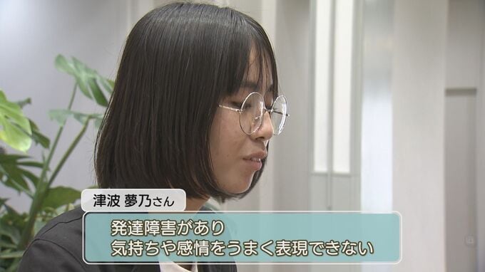高校3年生の津波夢乃さん。発達障害があり、気持ちや感情を言葉でうまく表現できません。