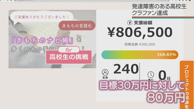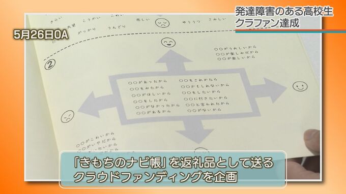 「きもちのナビ帳」と名付けられたこのノートを広めようと、考案者の津波夢乃さんがクラウドファンディングに挑戦し、みごと目標額を達成し成功を収めました。