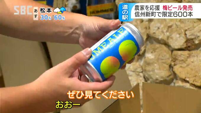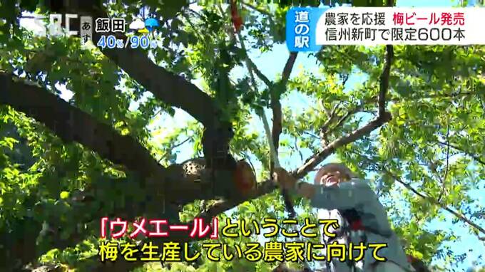 「UME―ALE(ウメエール)」は信州新町の道の駅で取り扱っているほか、「長野みなみ風ビール」でも今後、販売を予定しています。