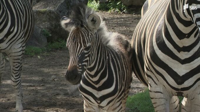 お母さんにぴたりと寄り添っているのが、裾野市の富士サファリパークで8月16日に生まれたばかりのシマウマのメスの赤ちゃん。赤ちゃんの体長は80cmで、体重は30kgとお母さんと比べるととても小さく、愛くるしさいっぱいです。