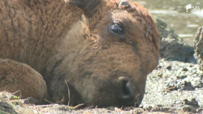 そして、お母さんの横でのんびりと過ごしているのが、7月31日と8月1日に生まれたアメリカバイソンのオスの赤ちゃん。赤ちゃんたちが元気に成長していることから、群れの中に入れて公開することにしました。赤茶色のふわふわとした毛並みは赤ちゃんの時だけの特徴です。