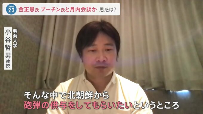 「ロシアとしては、いまウクライナが反転攻勢を強めている中で、かなり砲弾が不足しているはずです。軍需産業もダメージを受けているはずなので自分たちで砲弾を追加生産することが難しい。そんな中で北朝鮮から砲弾の供与をしてもらいたいというところ」