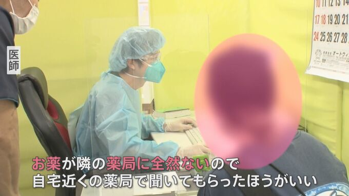 患者と話す医師「お薬が隣の薬局に全然ないので、ご自宅近くの薬局で聞いてもらった方が良いかと思います」