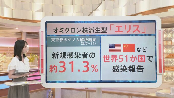 新型コロナの感染拡大の要因の一つとされているのが、新たなオミクロン株の派生型「エリス」の存在なんです。東京都の最新の解析結果によりますと、東京都の都内の新規感染者の中で、エリスの割合が最も多く約31.3%、3割を占めているんです。