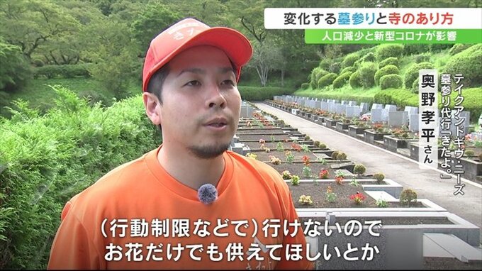 コロナの分類が5類に引き下げられても墓参り代行の依頼は増え続け、今年のお盆は去年の4倍から5倍に増えたといいます。