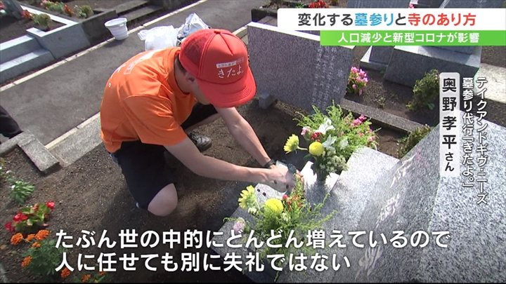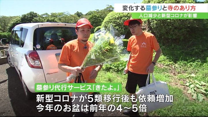 コロナの分類が5類に引き下げられても墓参り代行の依頼は増え続け、今年のお盆は去年の4倍から5倍に増えたといいます。