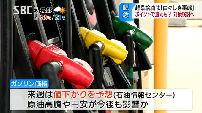 長野県内の今週のガソリン価格は、レギュラーが1リットルあたり194.5円と今週も全国最高値で、5週連続で過去最高値を更新しました。
