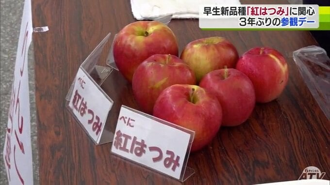 青森県黒石市の県りんご研究所の参観デーが6日から開かれていて、早生の新品種「紅はつみ」が訪れた農家の関心を集めていました。青森県りんご研究所の参観デーは3年ぶりに開かれ、研究所内ではリンゴ栽培の省力化…